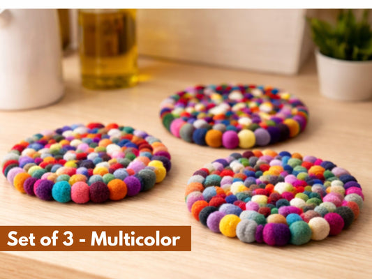 Handmade Christmas Felt Ball Trivets – Set of 3, New Zealand Wool Kitchen Decor