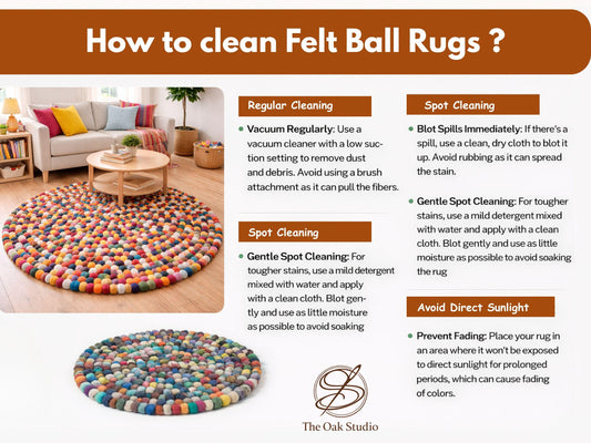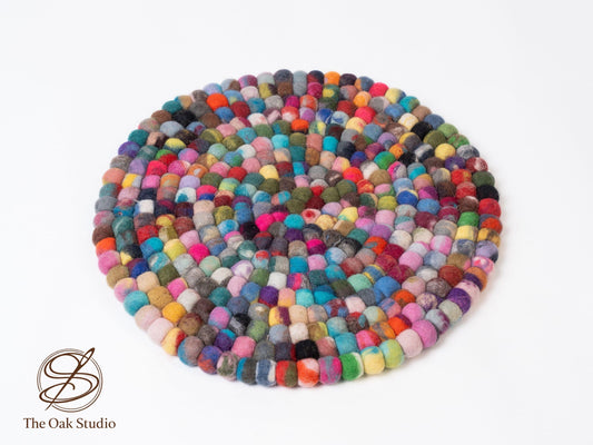 Handmade Felt Ball Rug – Pure Wool Round Carpet, Eco-Friendly Boho Decor