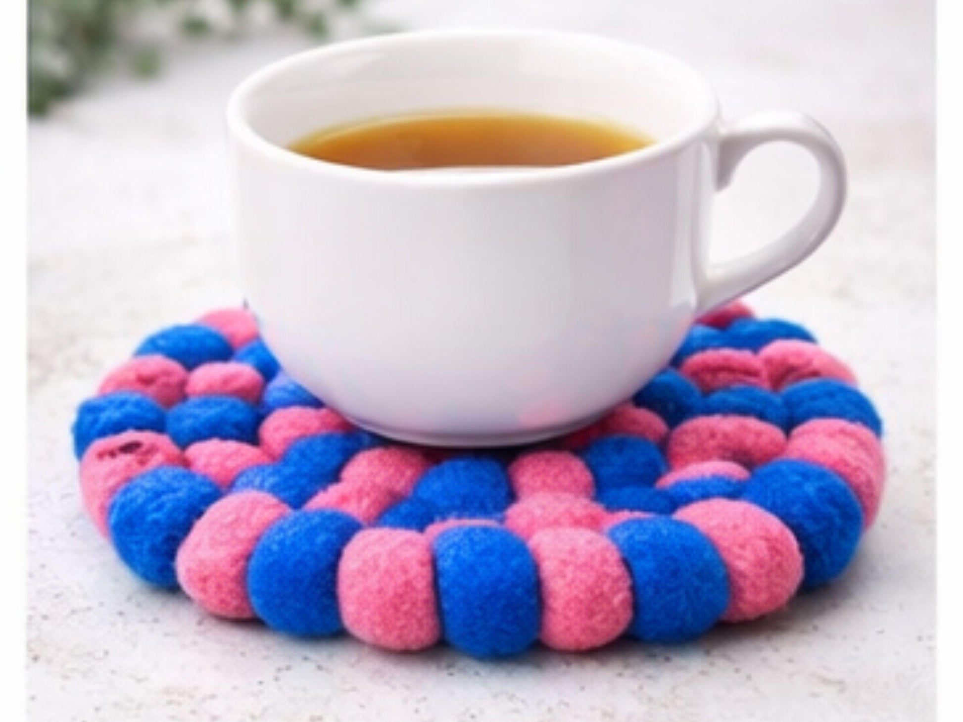 Handmade Pink Blue Felt Ball Trivets Set – Wool Kitchen Table Protector